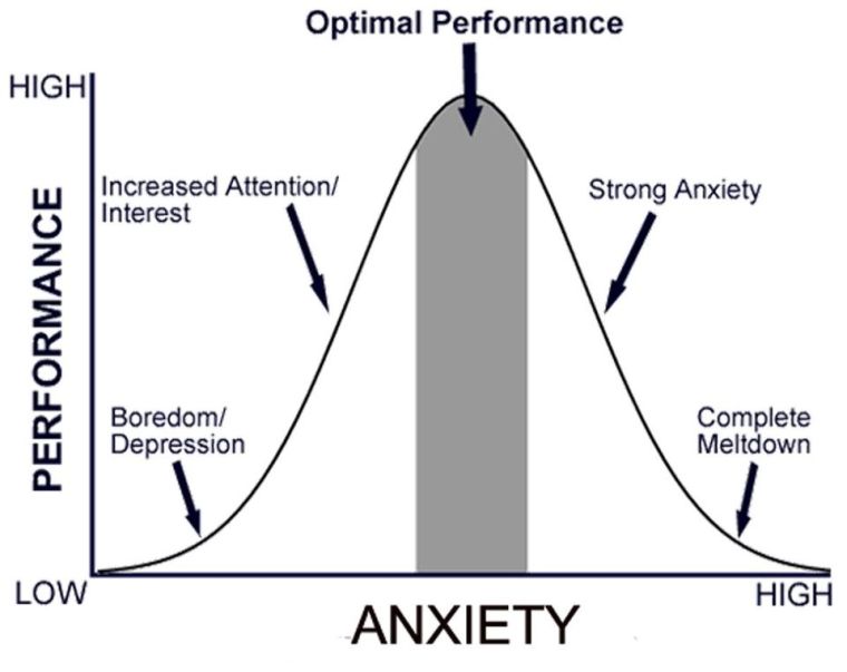 Alasdair White refers to the “optimal performance zone”, in which performance can be enhanced by some amount of stress. Beyond the optimum performance zone, lies the “danger zone” in which performance declines rapidly under the influence of greater anxiety.